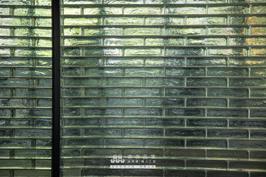 ▊本案位於桃園市,為一處集合式住宅的新建大樓,設計團隊在公設空間的隔間牆體上,選用森森品築「圓角水波光2010」透明實心玻璃磚,搭配上方一般透明玻璃,創造出層次感鮮明且富有光影變化的牆面語彙。
